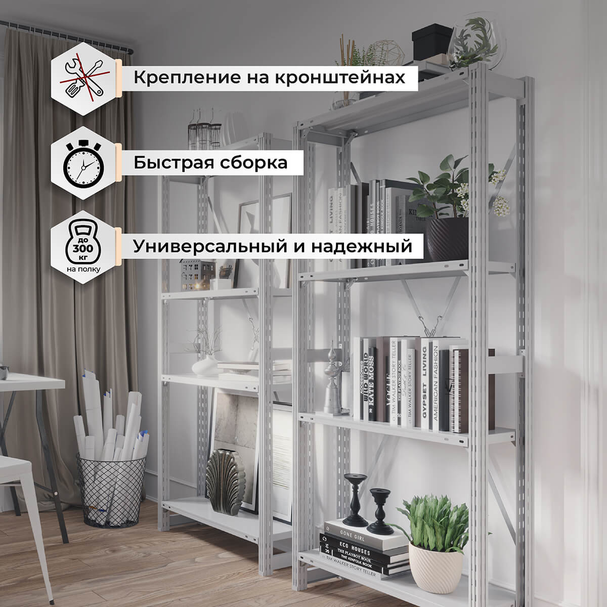 - Скидки на технику при покупке стеллажей